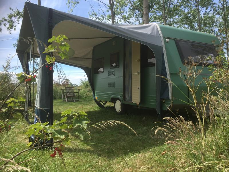Sinds 2018 zijn wij bezig om een bestaand populierenbos om te vormen tot een voedselbos. In het bos zijn tentplekken gecreëerd en aan de rand van het bos is plek voor een paar kleine kampeerbusjes. Je plek is omringd door fruitbomen, bessenstruiken, kruiden en wilde grassen. Er is geen stroom en water bij de plekken, wel op een centrale plek. Als je bij ons wil komen kamperen is het een vereiste dat je respect hebt voor de natuur en zo min mogelijk afval (in de daarvoor bestemde bakken) achterlaat. Wij helpen je daar graag bij; we verkopen verpakkingsloze producten in ons winkeltje en groente, fruit en eitjes direct uit de tuin. Ook is het mogelijk brood en ontbijtgerechten te bestellen. Wij zijn kleinschalig, met 20 plekken verspreid over 3 hectare, en onze gasten zijn rustzoekers. Die rust vind je hier zeker. Al na één dag voelen gasten zich meestal herboren en helemaal op hun gemak. In het bos is een gezamenlijke vuurplek met rooster om op te grillen. Wegwerp bbq’s en vuur bij je tent zijn niet toegestaan. Ook is er een gezamenlijke koelkast en waterkoker waar je gebruik van mag maken. In het bos is er een sanitairgebouwtje met twee composttoiletten en een warme en koude douche. Omdat er geen riool is mag er geen zeep/shampoo gebruikt worden en voor de afwas alleen (een klein beetje) ecologisch afwasmiddel. Een stukje verder lopen is er luxer sanitair met heerlijke douches en spoeltoiletten, hier mag ecologische zeep/shampoo gebruikt worden.
